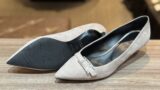 履き込まれた靴はつま先が反り返っていることも多く、そのぶんスチール装着の難易度も上がるのですが、ハーフラバーが貼られている場合は意外と施工しやすい側面もあります。